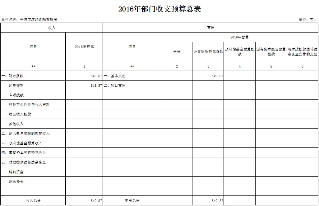 2016年公共预算收入549.87万元,其中:财政拨款收入549.87万元。