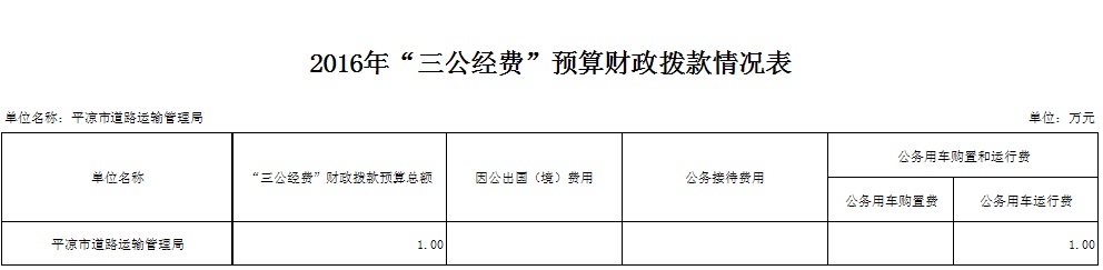 2、公务用车购置和运行费安排1.00万元,主要用于公务用车燃料费、维修费、过路过桥费、保险费等的支出;